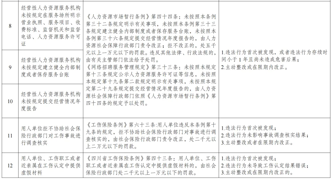 近期,四川省人社厅印发《四川省劳动保障轻微违法行为不予处罚清单》的通知,该《通知》从2024年6月1日起正式执行。